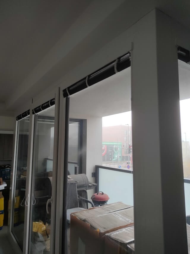 Majitel bytu v Praze si u nás objednal dodávku a montáž vnitřních lamelových žaluzií na balkonové dveře a velká fixní okna, která má orientovaná na balkón.